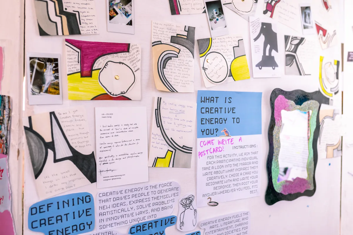 Our first Creative Energy Exhibition was influenced by the emerging field of ‘Energy Humanities’.  It’s a discipline that aims to understand how energy shapes society through culture. London School of Solarpunk also brought in the concept of participatory experiences, following its motto: “design for collisions”. This created an exhibition that felt like a gathering of friends, an informal and inspiring space where creative thinking could flourish.